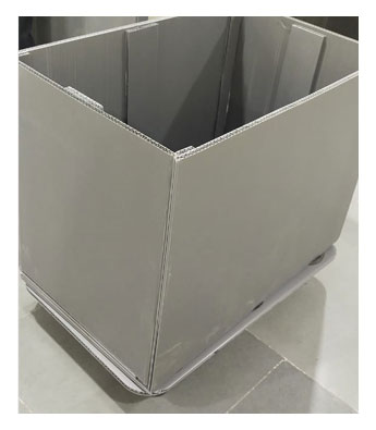 Foldable large boxes with foldable PP pallets for carrying heavy auto parts